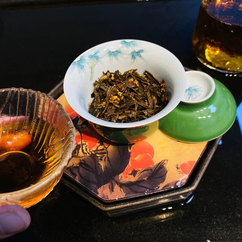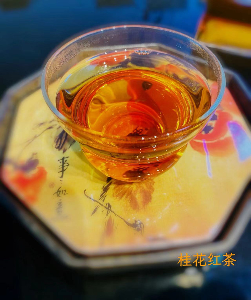 【桂花红茶】念想的味道 细细品尝,香中带甜,花香不抢茶韵,茶韵烘托花香,仿佛置身桂花盛开的树下。。 桂花红茶是将桂花与红茶巧妙结合而成的茶品,有着独特的风味和诸多益处。以下是关于它的介绍:•起源与历史:其历史可追溯至古代,明清时期,中国就有了将花卉与茶叶混搭饮用的习惯,桂花红茶在此传统基础上,经不断改良创新而形成。•原料选择:红茶通常选用武夷山、桂花选择金桂香气浓郁,适合窨制花茶。•制作工艺:大致包括采花、晾花、拌花、装篓、烘制等步骤。其中,拌花时需一层茶一层花均匀覆盖并翻拌,装篓发酵15到18个小时,再经炭火烘制,温度控制在60℃左右,一个半小时左右,烘至干后下烘。•口感与香气:香气既有桂花的清雅甜美,又有红茶的醇厚浓郁,两者相互融合。口感上,茶汤入口甘甜不腻,饱满且富有层次感,红茶的醇厚与桂花的清甜,回味无穷。•冲泡方法:水温在100℃左右,投茶量根据个人口味而定。第一泡至五泡浸泡时间5秒左右,,后续几泡可适当调整浸泡时间稍长些。•功效作用:红茶茶性温和,桂花性温,入肺、脾、肾经,具有温肺化饮、散寒止痛等功效,二者结合制成的桂花红茶有暖脾胃、助消化的作用。 |